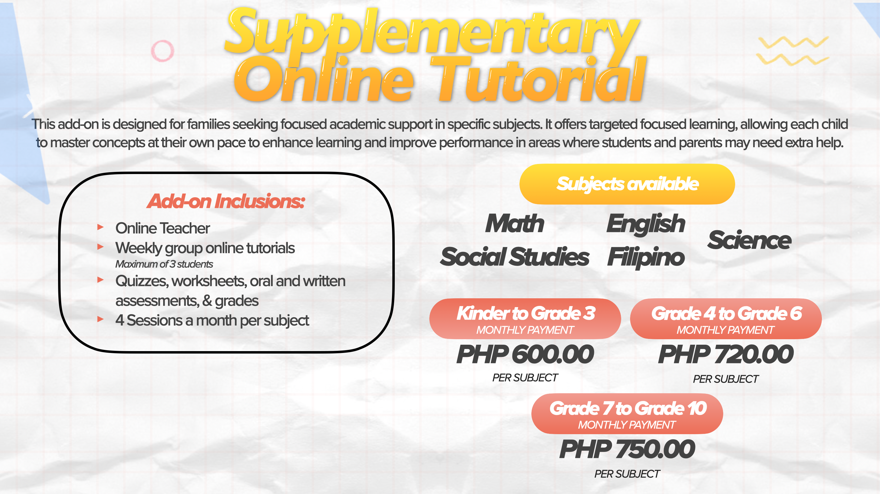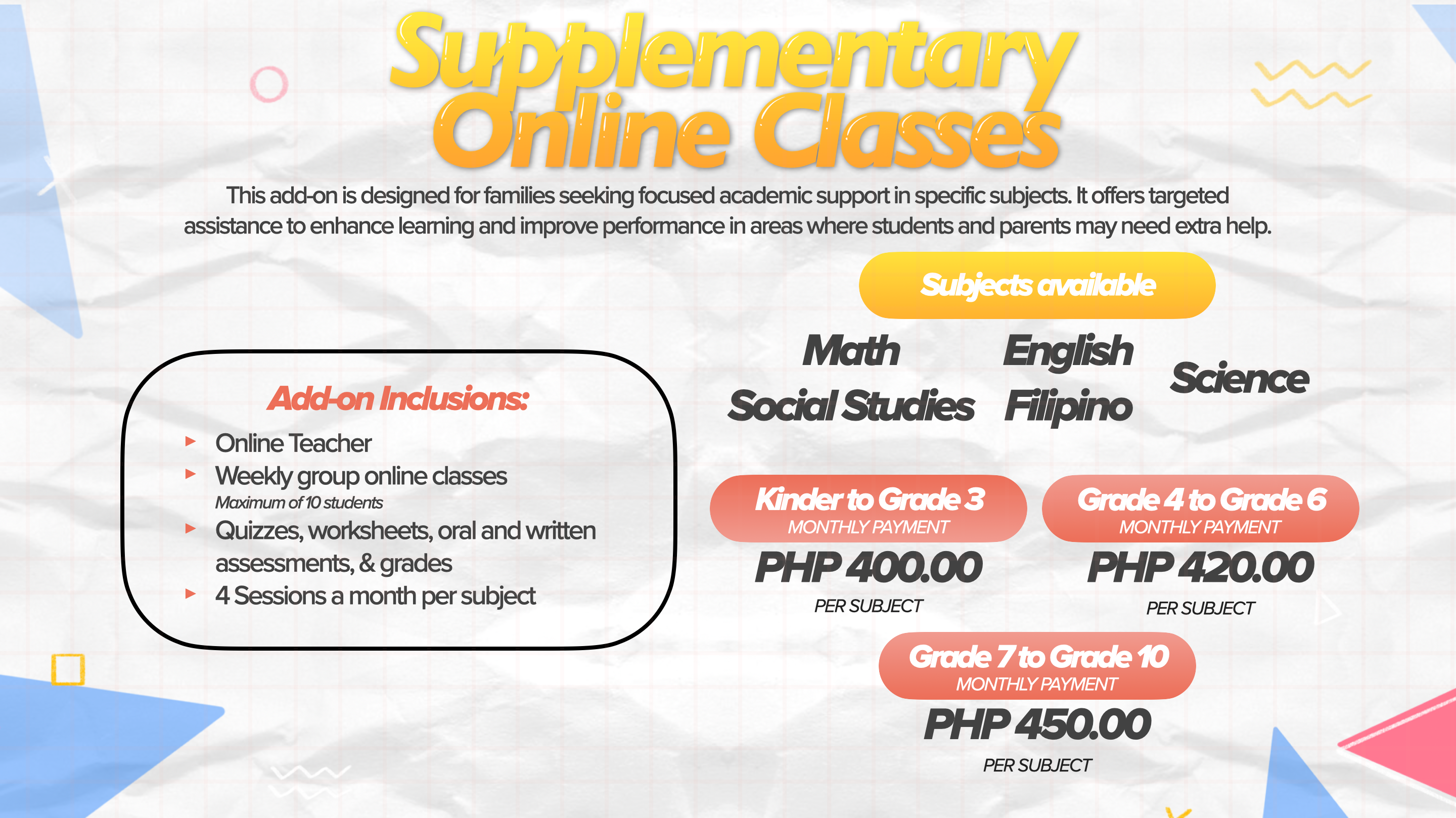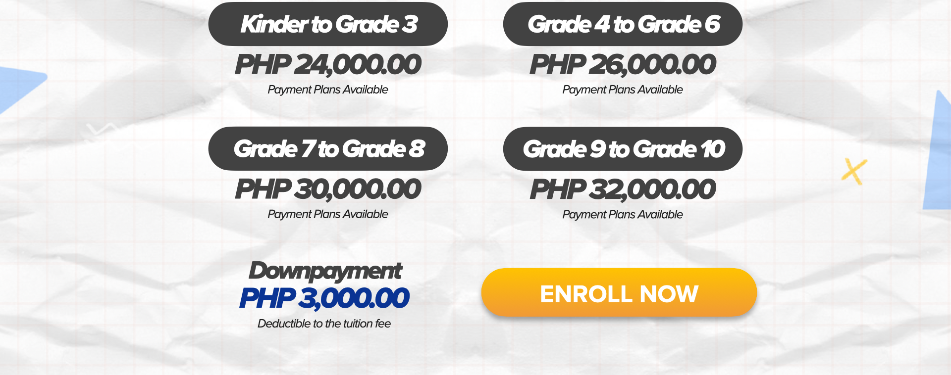 Yes, we offer installment plans ranging from 3 to 9 months, with a 5% installment fee to ensure affordability and flexibility. If you would like a computation, please fill out the form below with your children's program details and grade level.