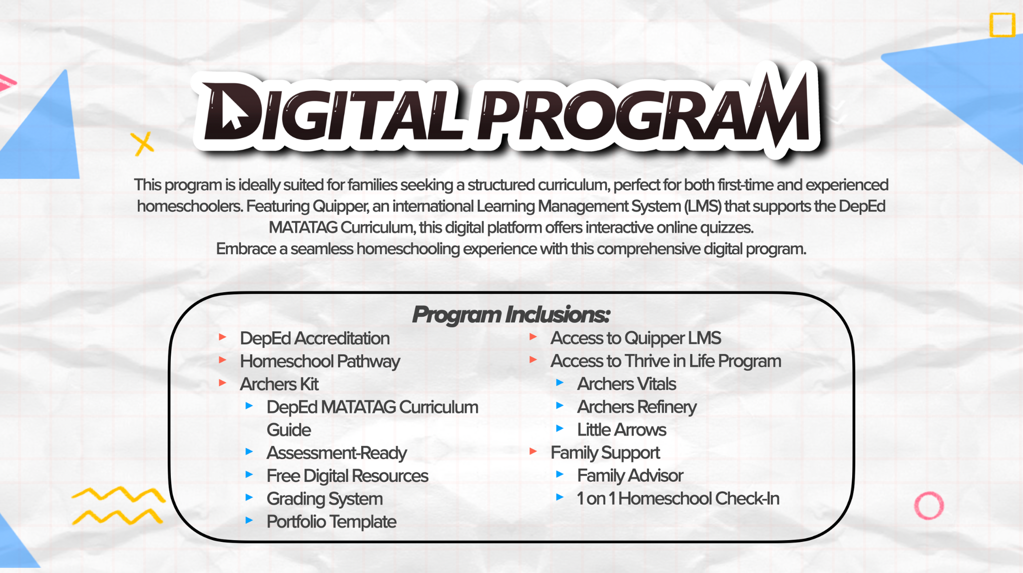 Yes, we are. We partner with Casa Del Niño Montessori and Science High School. They have 46 years of experience in the industry. For verification, our school ID is 402593.All students who complete the school year with us will receive DepEd-accredited school records and documents, ensuring that their homeschooling is officially recognized should they return to traditional schooling.